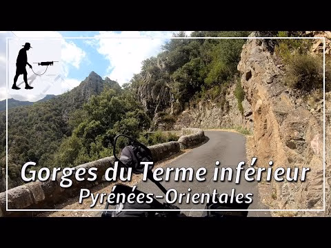 About 8 km west of the village of Céret, the Mondony River, coming from the south, joins the Tech River at Amélie-les-Bains-Palalda. The Mondony River rises in the highlands of the eastern Pyrenees and has created an impressive gorge over time. Directly south of Amélie-les-Bains-Palalda is the narrowest and steepest cut in the gorge, which is only accessible on foot via an artificial via ferrata. Further south, the gorge widens into a valley in which a small road could also be built on the left / western side of the river. Some houses and settlements and also the hamlet of Montalba d'Améli can be reached via this road. The section shown is about 8 km long and leads from Amélie-les-Bains to the Pont du Can Pagris Ouest. About halfway, at the Salt d'aigua de Mascarat waterfall, the road forks. The D53 road continues to the left / east over a stone bridge to Montalba. To the right, the D53B road then continues through the Gorges du Terme inférieur. The road is quite narrow, especially in the second half of the route; if there is oncoming traffic, you may have to backtrack to the next passing point. Some blind bends, dirt on the road and in some places falling rocks force you to drive carefully and slowly. The road is located in the department of Pyrénées-Orientales, in the Occitanie region.