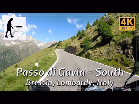 The southern ascent, which is just under 18 km long, begins in Ponte di Legno in Val di Sole, is well constructed and paved throughout. However, much of the route is very narrow and most of the hairpin bends are very tight. It is difficult for cars and motorcycles to pass each other, but it is possible. If two cars meet, one has to drive back to the next passing place, which can be quite a distance. The southern ascent also includes an approximately 800-meter-long unlit tunnel.